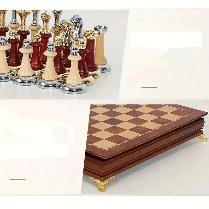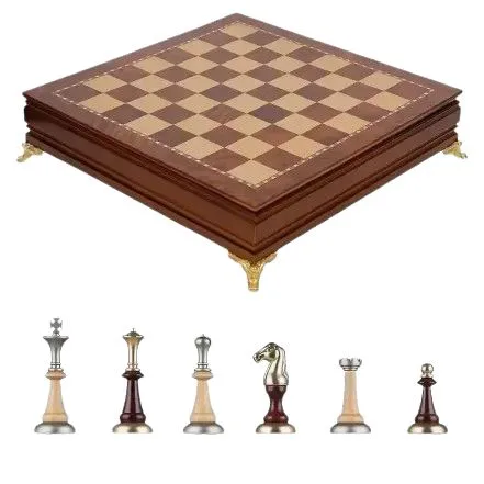 • Inclus : pièces d’échecs en bois et métal, avec 2 dames de rechange.