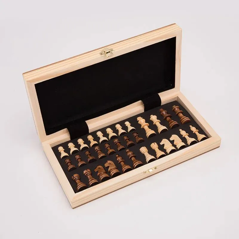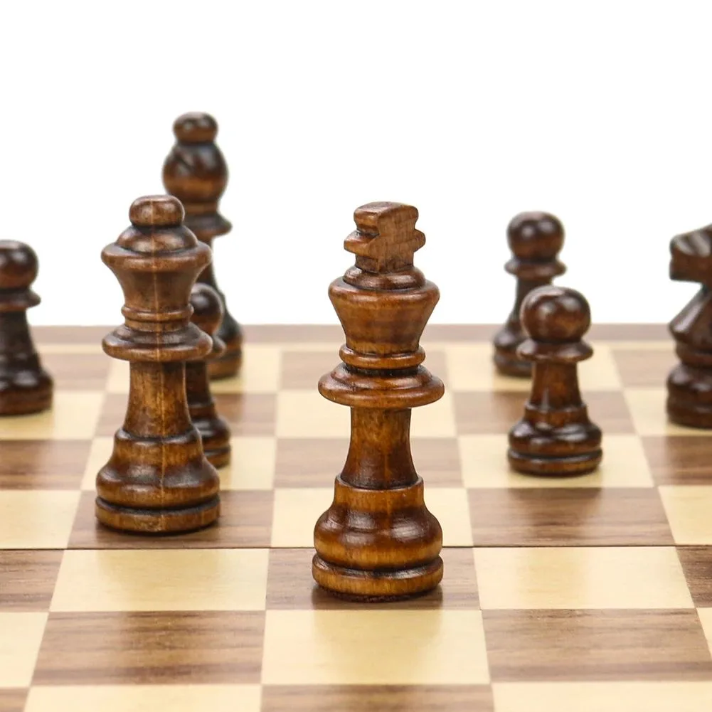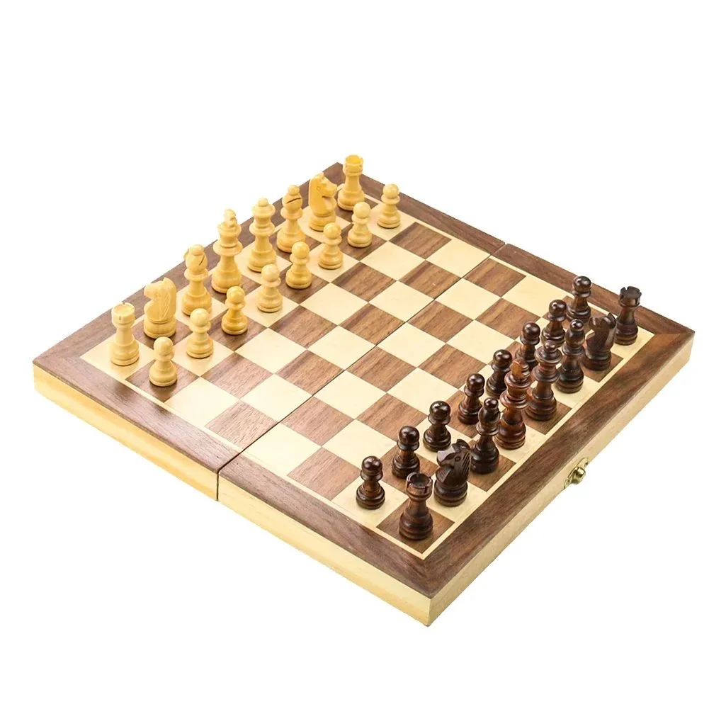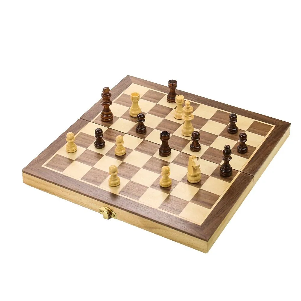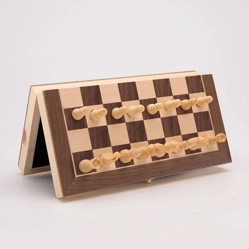 - Jeu d’échecs et dames en bois pliable et portable.