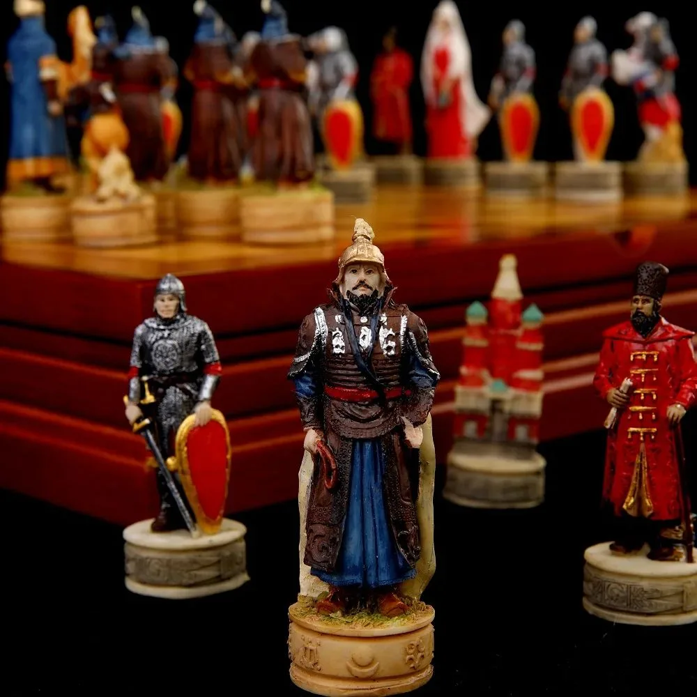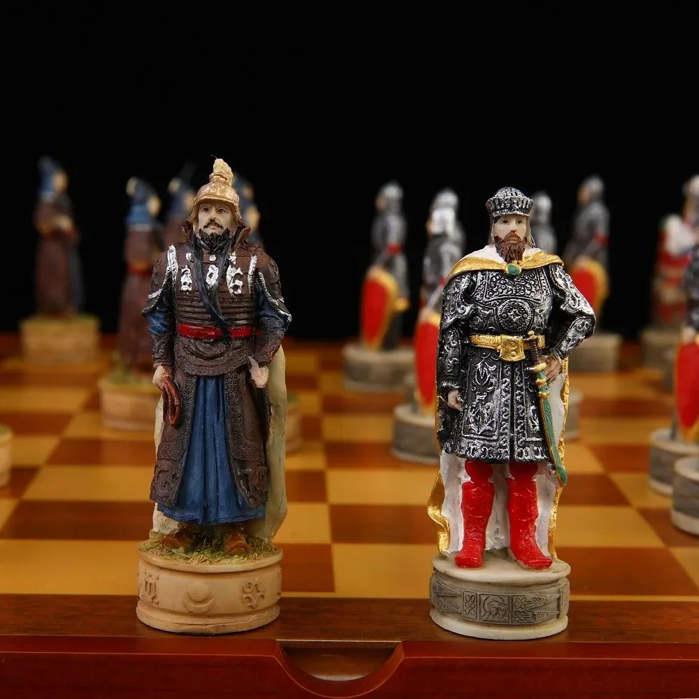 Découvrez notre échiquier historique, une véritable œuvre d’art qui captivera les amateurs d’histoire avec son thème unique évoquant la bataille légendaire entre Genghis Khan et la Russie. Chacune des pièces est méticuleusement conçue pour attirer l’œil, mêlant histoire et esthétique moderne.