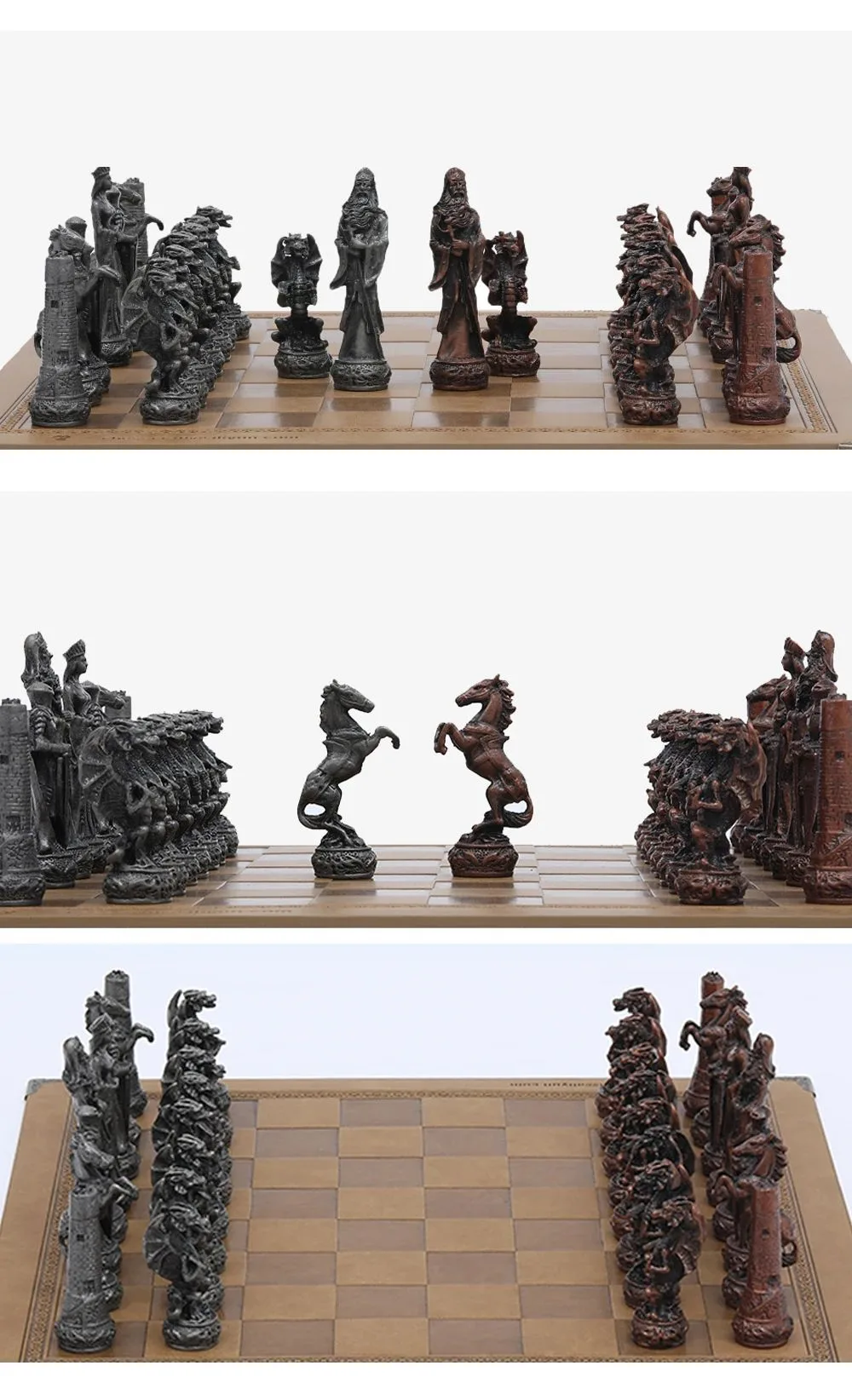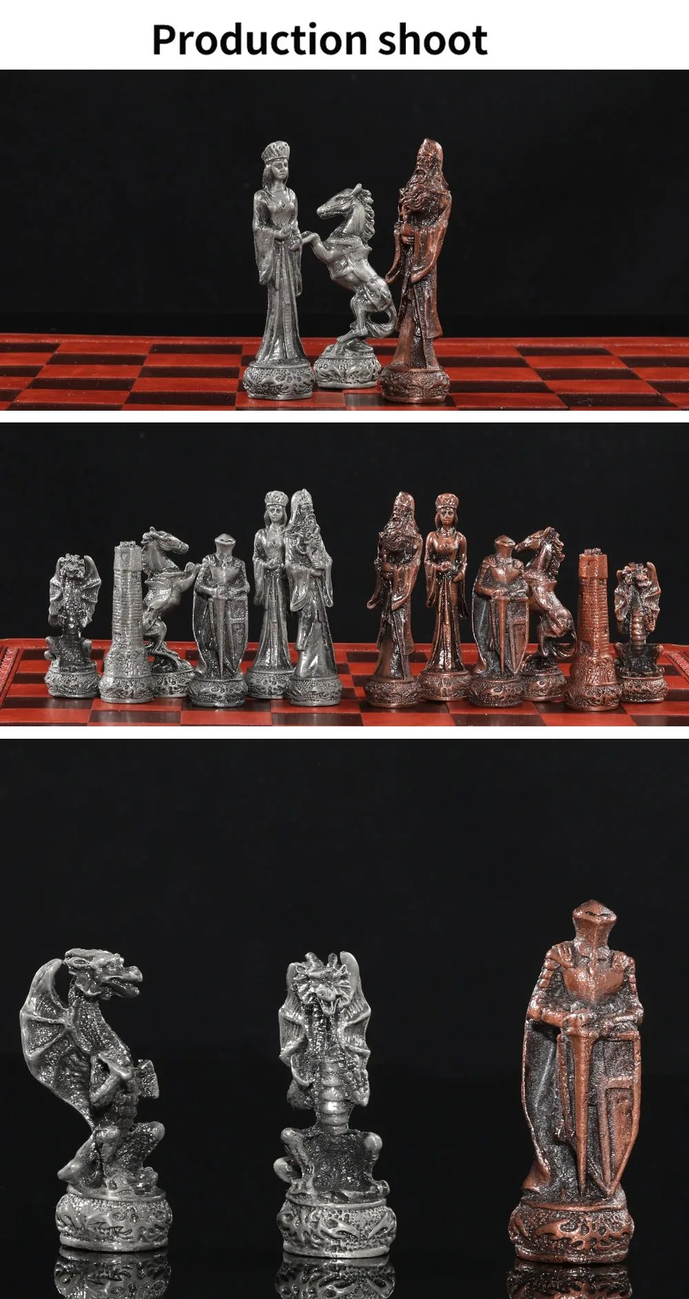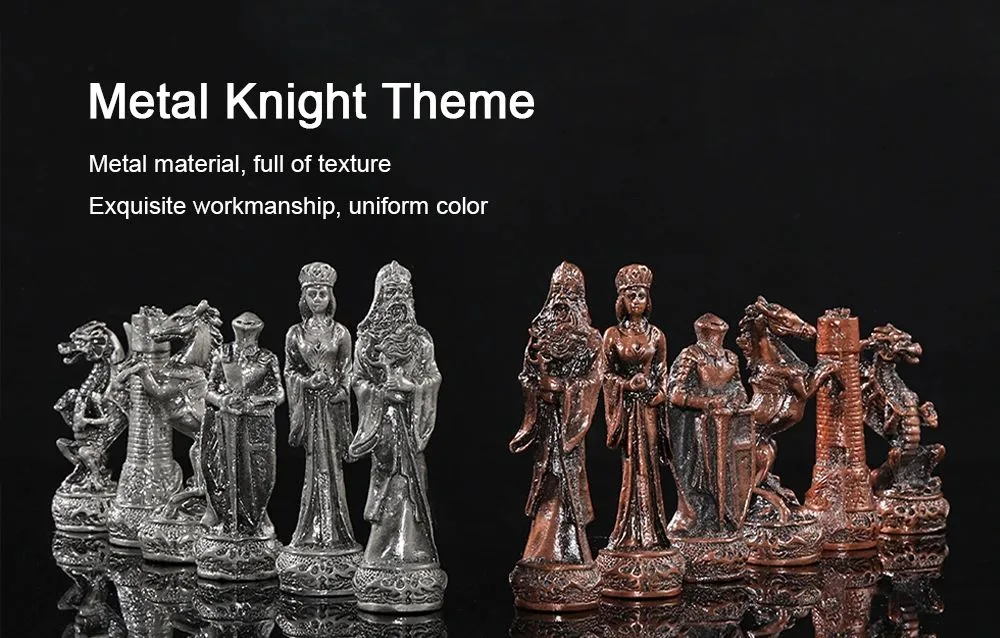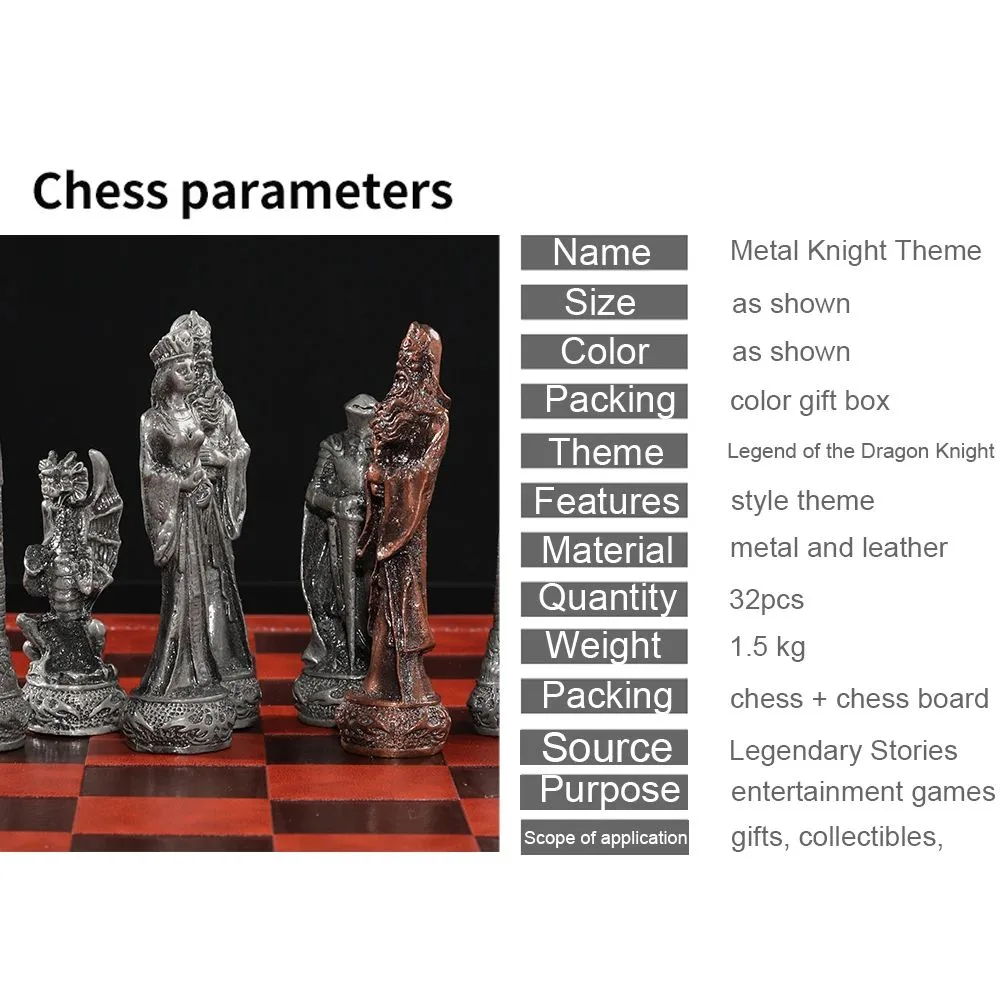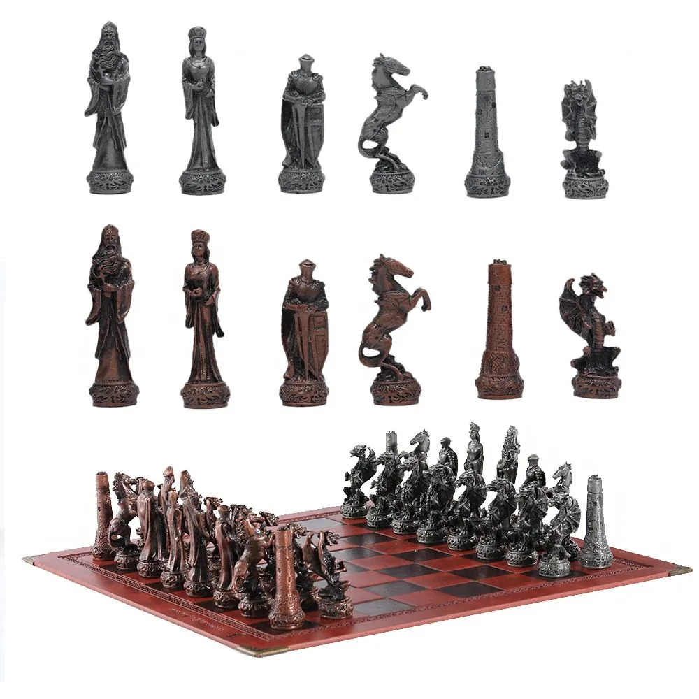 Découvrez le potentiel de Echiquier En Cuir Pièces D’echecs En Métal Sur Le Thème Du Dragon