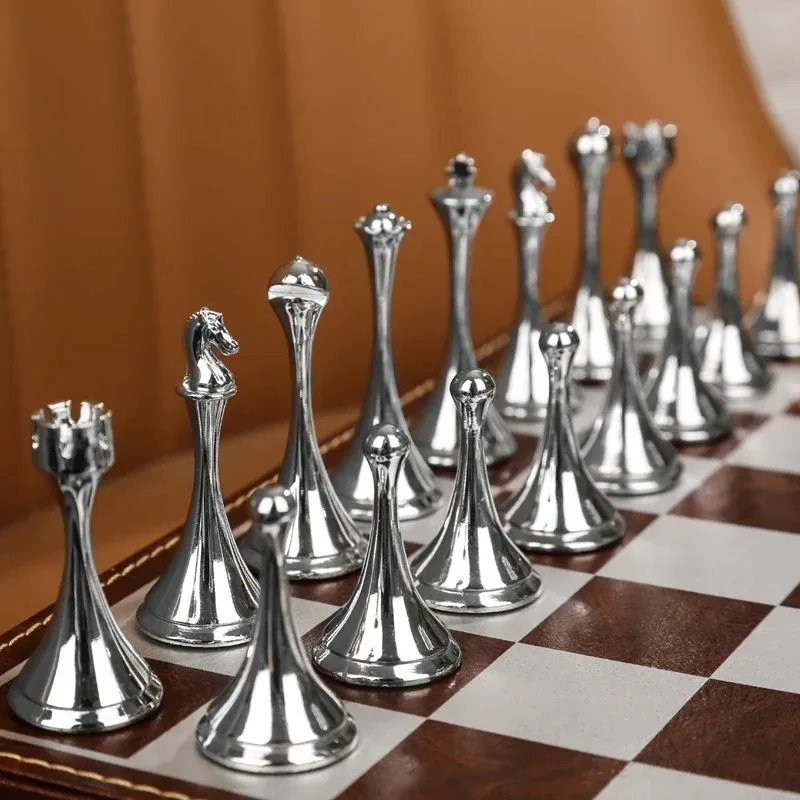 - Pièces d’échecs métalliques au style moderne